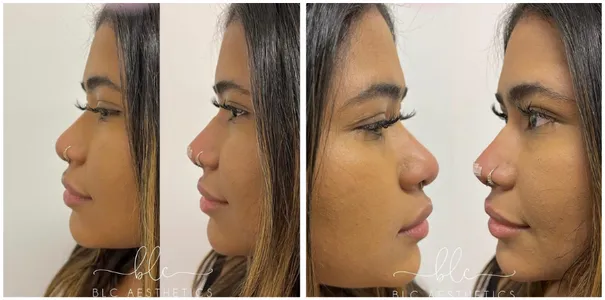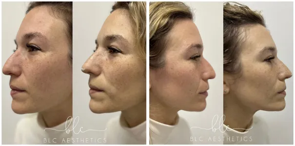 Non surgical nose enhancement with H Nose threads. This lifts the tip and also supports the bridge to elongate the nose and make it appear thinner and more supported.